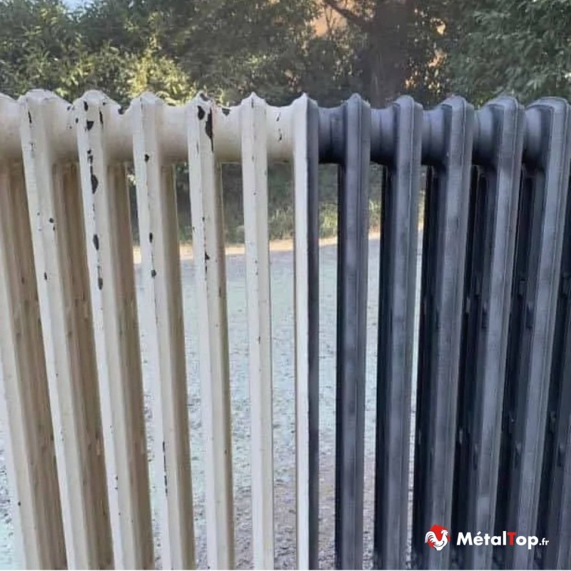 Je pensais devoir les faire sabler, mais ce produit a suffi. Mes radiateurs sont revenus gris métal, prêts à peindre.