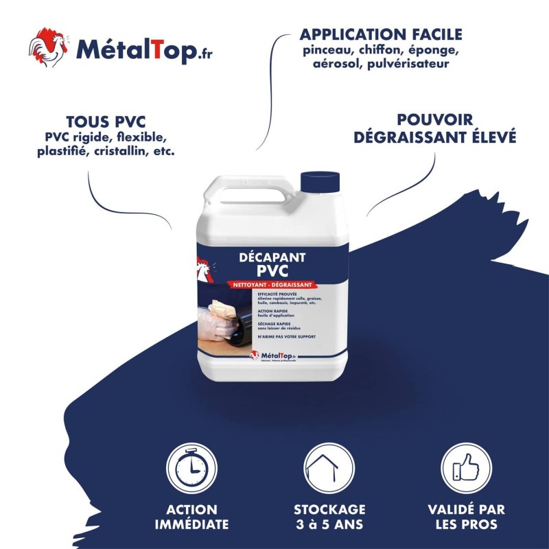 Bonjour, notre produit est un décapant professionnel spécialement conçu pour le PVC. Vous pourrez facilement retirer les anciennes couches de peinture ou de vernis, sans endommager la surface en PVC.