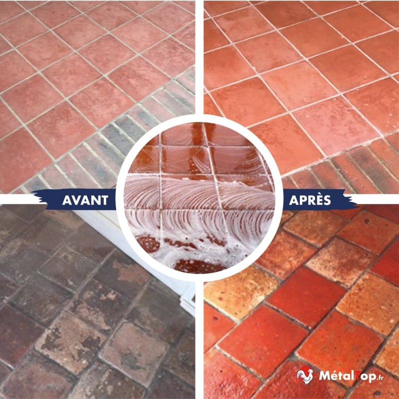 Mes tomettes étaient devenues marron/noir à cause de la crasse accumulée. J'ai retrouvé leur belle couleur rouge brique. C'est magnifique.