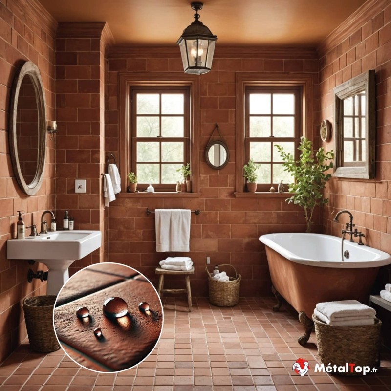 J'ai mis des tomettes dans ma salle de bain (oui j'ai osé !). Avec cet hydrofuge, aucune trace d'humidité ou de moisissure.