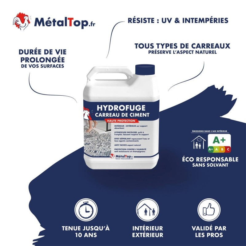 Commandez dès maintenant et bénéficiez avec Métaltop, du top des hydrofuges pour carreaux de ciment !