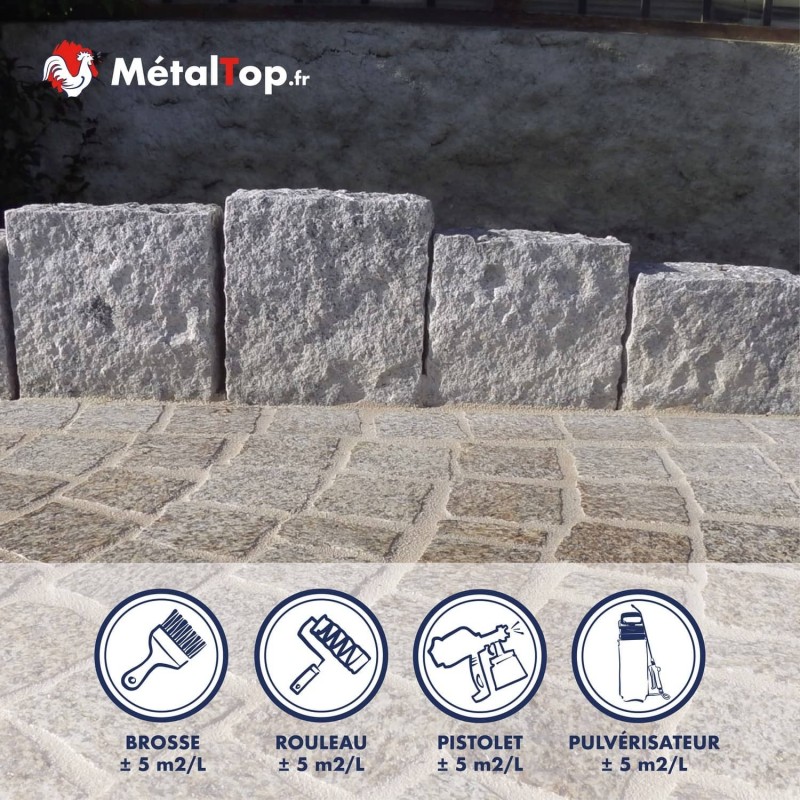Hydrofuge granit incolore pour imperméabiliser et protéger vos sols poreux.