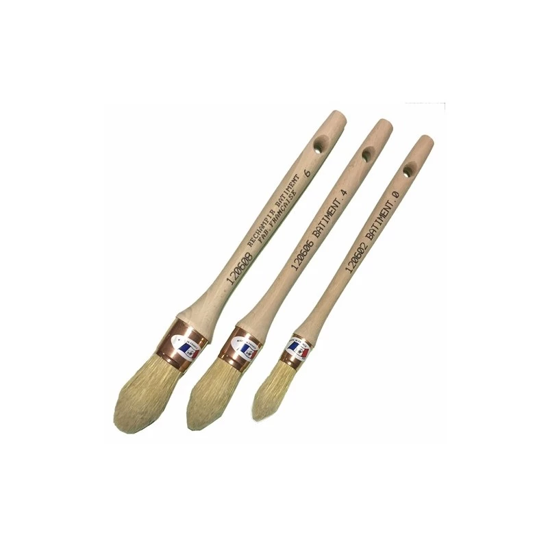 Rechampir peinture professionnelle 1.8 ou 2.5 ou 2.9 cm. Virole en acier cuivré. Poils en pure soie.