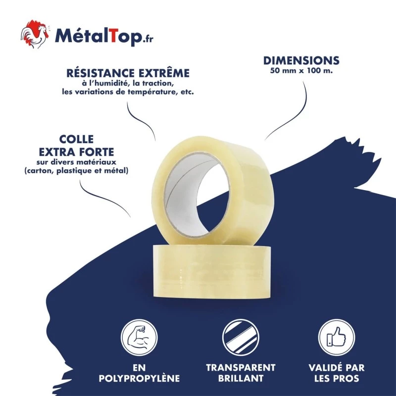 L'adhésif est bon, mais le diamètre du rouleau (à cause des 100m) rentrait difficilement dans mon vieux dévidoir en plastique. Vérifiez votre matériel.