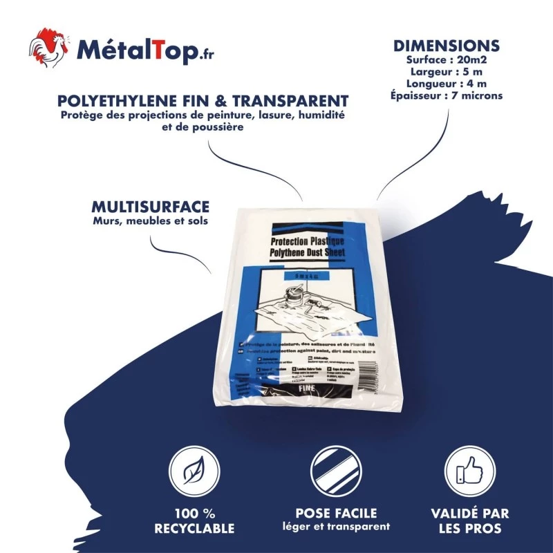 C'est une bâche fine (7 microns), donc il faut la manipuler avec douceur, mais pour protéger des gouttes de peinture, c'est parfait.