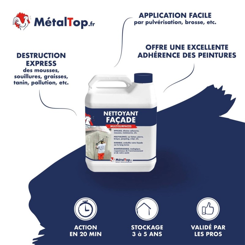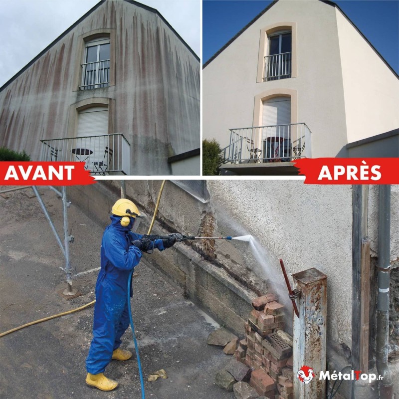 Je ne peins plus une façade sans passer ce produit avant. Il désincruste tout, saponifie les graisses et prépare le fond.