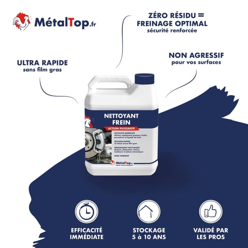 Le nettoyant freins professionnel est un solvant technique haute performance spécialement formulé pour le nettoyage et le dégraissage des systèmes de freinage et des pièces mécaniques. Il permet d'éliminer rapidement les graisses, huiles, poussières de frein, cambouis et résidus techniques sans laisser de trace après évaporation. Sa formulation équilibrée à base de solvants à forte volatilité assure une action immédiate et un séchage très rapide.