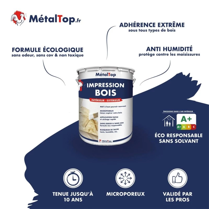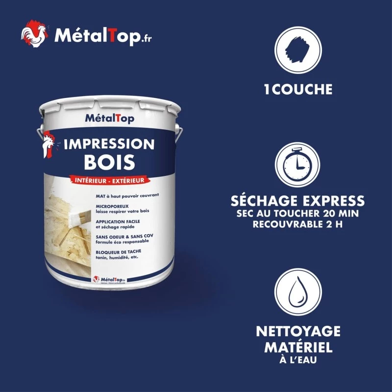 Parce qu’elle améliore l’accrochage de la peinture et renforce la durabilité du système. L’impression bois évite l’écaillage, le cloquage et le décollement en créant une base solide et microporeuse qui laisse respirer le matériau.QUESTION