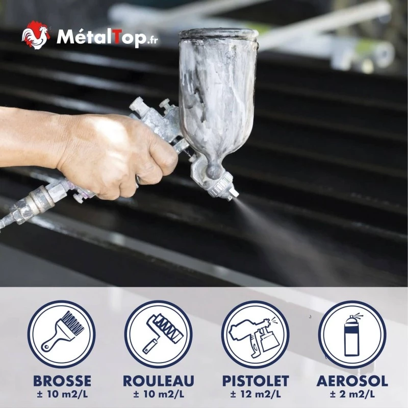 Cette peinture est simple à appliquer, que ce soit au pinceau ou au pistolet. Elle offre une excellente résistance à la corrosion et un rendu professionnel. Je suis fier d’utiliser un produit made in France de cette qualité !