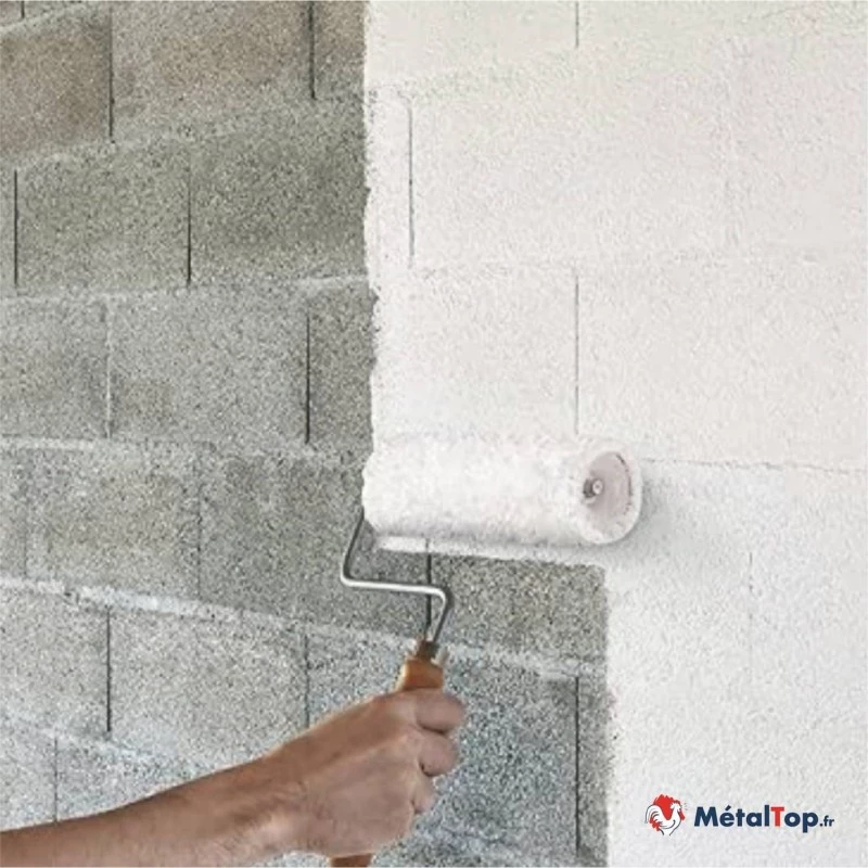 N'utilisez pas un rouleau à bas prix. Il faut un bon rouleau à poils longs pour bien combler les creux du parpaing sans s'épuiser.
