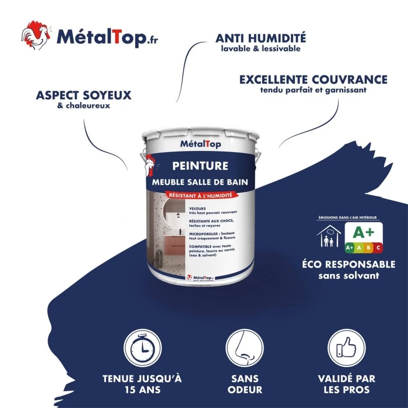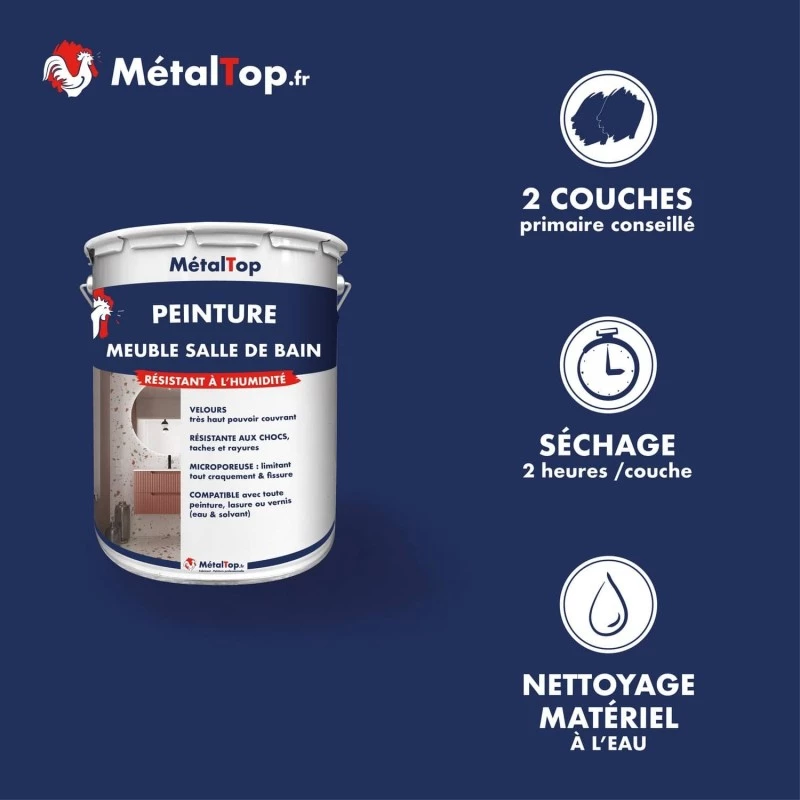 Peinture meuble salle de bain, 182 teintes aux choix, pour protéger et embellir vos meubles de salle de bain.