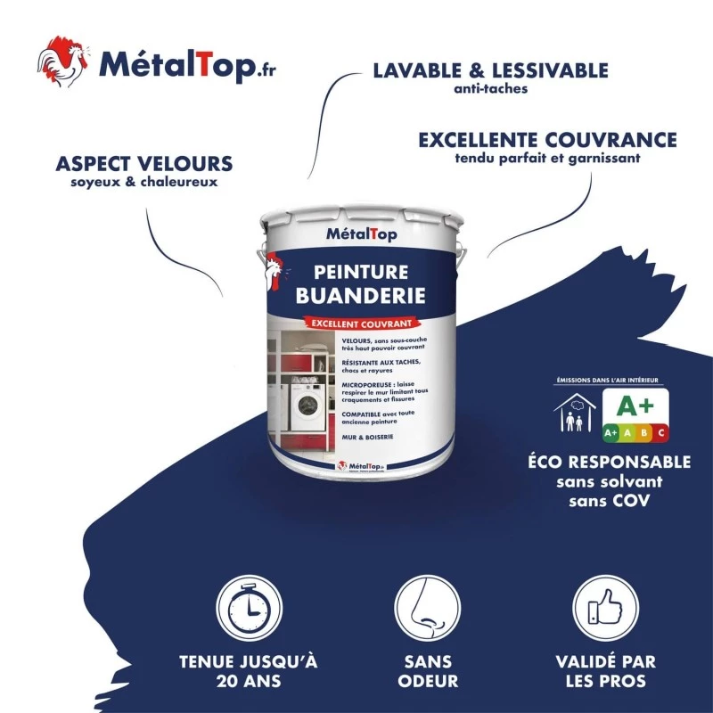 La peinture pour buanderie est la solution idéale pour protéger et rafraîchir cette pièce à usage quotidien. Facile à appliquer et résistante, elle assure une finition durable et esthétique pour un espace propre et fonctionnel.