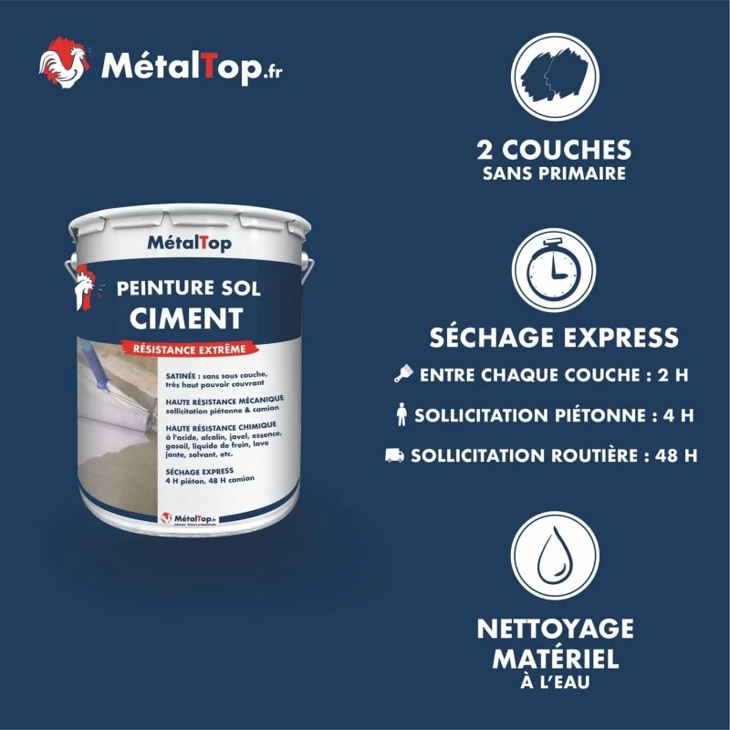 La peinture pour sol ciment est idéale pour la protection des sols ciments ou bétons très exposés à l'encrassement. Elle convient particulièrement bien pour les terrasses, les balcons les seuils de porte ou les appuis de fenêtre. Elle résiste très bien aux lavages répétés sans se détériorer. Elle offre une excellente tenue face aux agressions du soleil ou des ultraviolets.