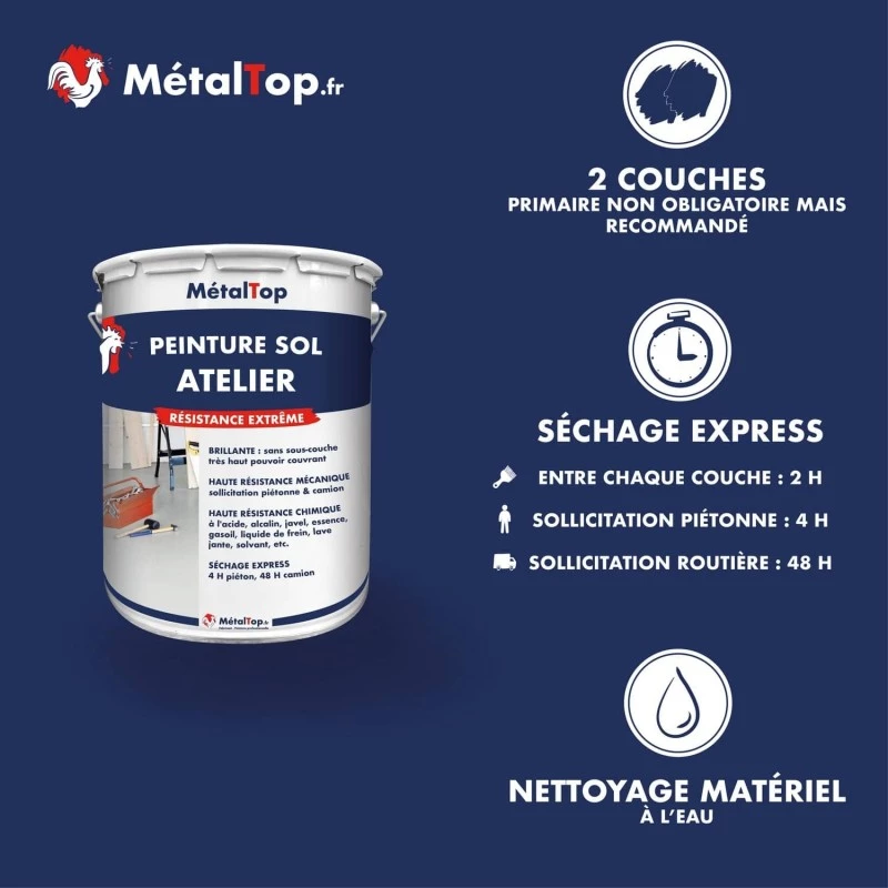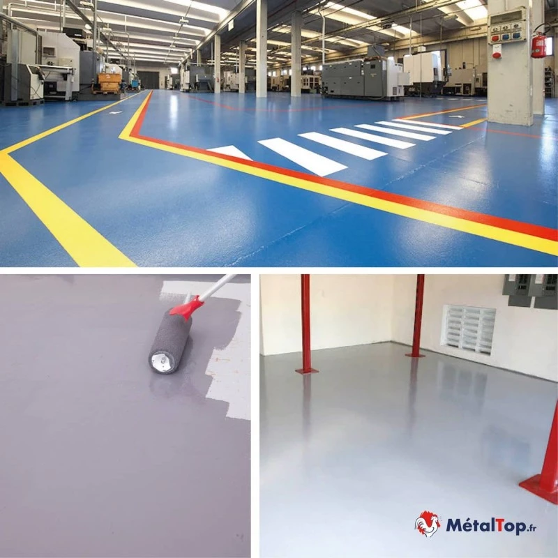 Peinture sol atelier brillante pour rénover vos sols béton des sollicitations importantes.