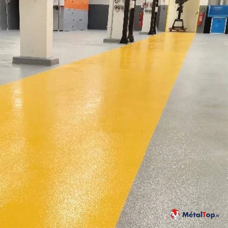 La peinture de sol atelier, est une résine de sol professionnelle qui est conçue pour résister à un trafic important. Elle convient particulièrement bien pour protéger un sol dans une usine, un atelier, un entrepôt, un parking, un couloir de circulation ou une salle d'exposition par exemple. Elle possède une excellente résistance à l'usure, à l'abrasion, aux rayures et aux légers chocs du quotidien.