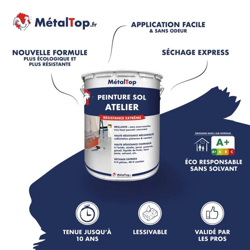 Mon sol d'atelier subit tout : chutes de clés, taches d'huile, passages de crics... Cette peinture est la seule qui encaisse sans broncher. Le film est ultra dur. Le nettoyage est un jeu d'enfant, même les graisses incrustées partent bien.