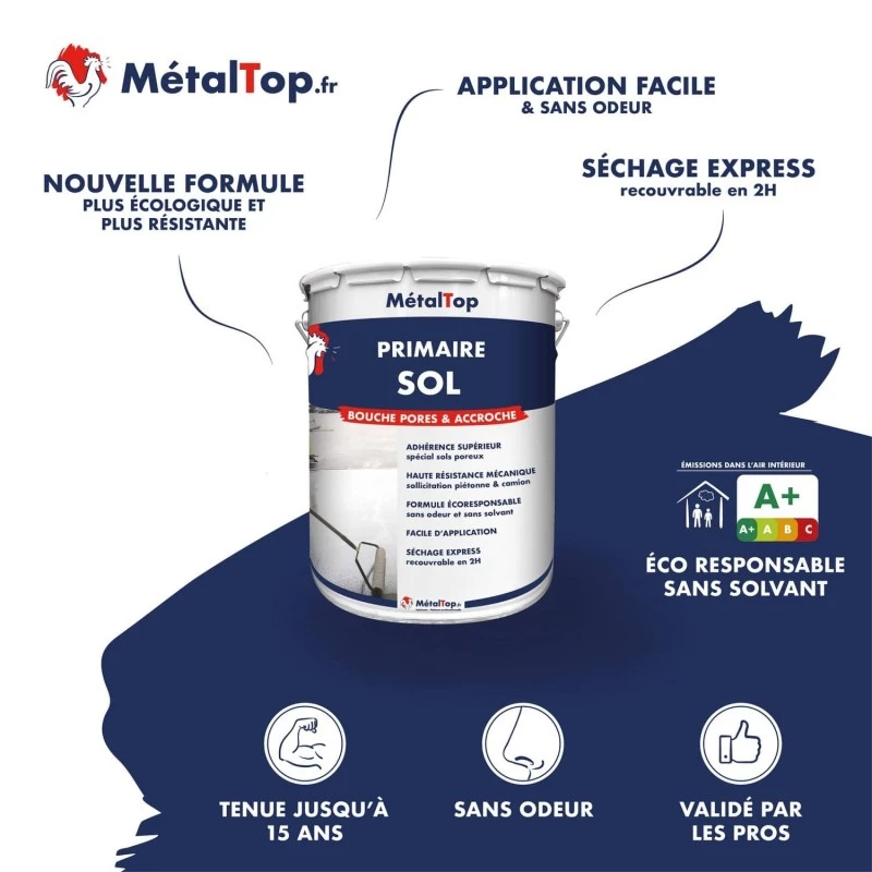 Le primaire est recommandé sur des sols poreux et absorbants.
