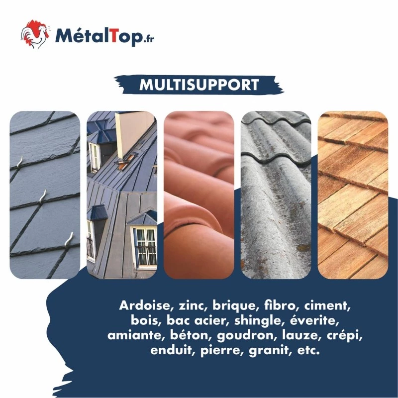 Oui, il convient à la plupart des matériaux : tuiles en terre cuite, ardoises naturelles, fibrociment, bacs acier, béton. Sa formule non acide respecte les surfaces et prolonge la durée de vie de la couverture.Calculer votre quantité