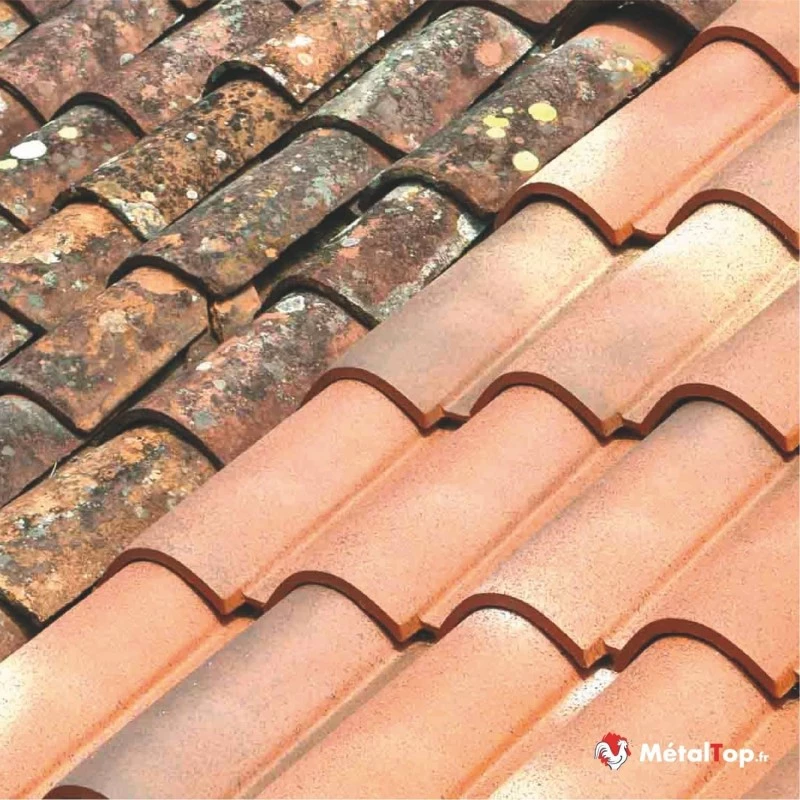 J'ai traité mes tuiles en terre cuite l'année dernière. Avec les pluies, tout s'est décroché. Résultat impeccable.