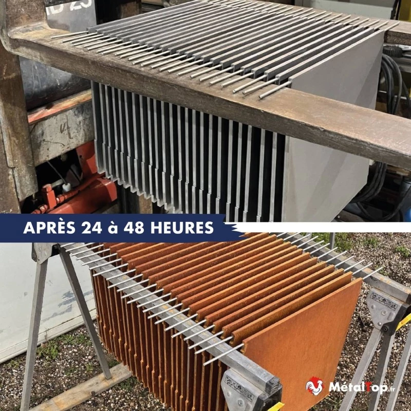 Avant j'attendais des semaines que le corten rouille dehors. Là c'est plié en 1h.