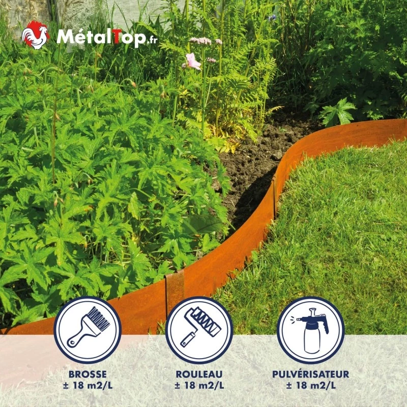 Bon produit pour activer les bordures en acier Corten chez mes clients. Deux passes suffisent pour un résultat homogène.