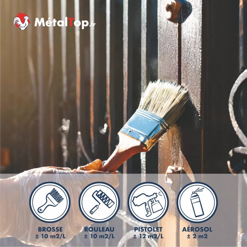 Cette protection anticorrosion apporte un très bel aspect satin pouvant se recouvrir par tous types de peintures ou de vernis décoratifs.