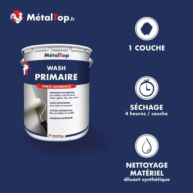 Excellent primaire, accroche bien mais ne pas oublier d'acheter le dérochant galva pour être sur que le wash accroche bien